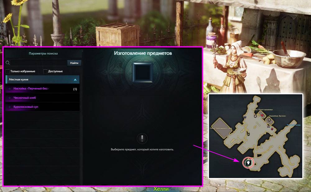 Настойку «Перченый бес», Куролисковый суп и Чесночный хлеб приготовит повар Хелли в Леонхольде.
