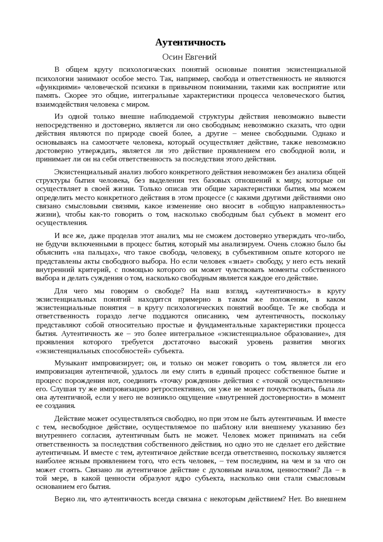 Быть аутентичным — значит уметь слышать себя и выбирать то, что по душе. Делать этот выбор придется каждую минуту. Согласитесь ли вы, что, например, расхваленный критиками глубокий и умный фильм скучен и ничего более? Остановите свой выбор на «престижной» работе, муже, машине или выберете то, что по душе? В первом случае вы оправдываете свой выбор внешними знаками «долженствования», а во втором – самоактуализируетесь.