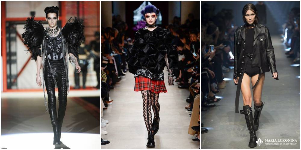 Характерные детали в образе Бунтаря: рваные формы, джинсы, куртки-косухи, рубашки, трикотаж.