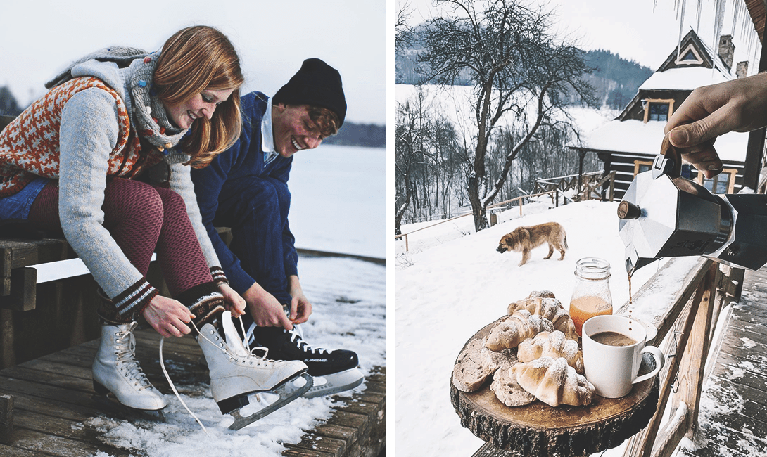 Конечно, зимой нужно покататься на коньках. Да, это можно сделать и в городе, но намного приятнее отдалиться от людей и выехать на лед какого-нибудь озера (если уверен, что он крепкий), где тебе никто не будет мешать. Природа рядом точно вдохновит своей красотой и атмосферой сказки. Можно попробовать встать на лыжи, сноуборд или вспомнить детство и сесть на санки. Еще можно всем вместе позаботиться о здоровье: закалиться холодной водой на морозе — такой опыт запомнится надолго.