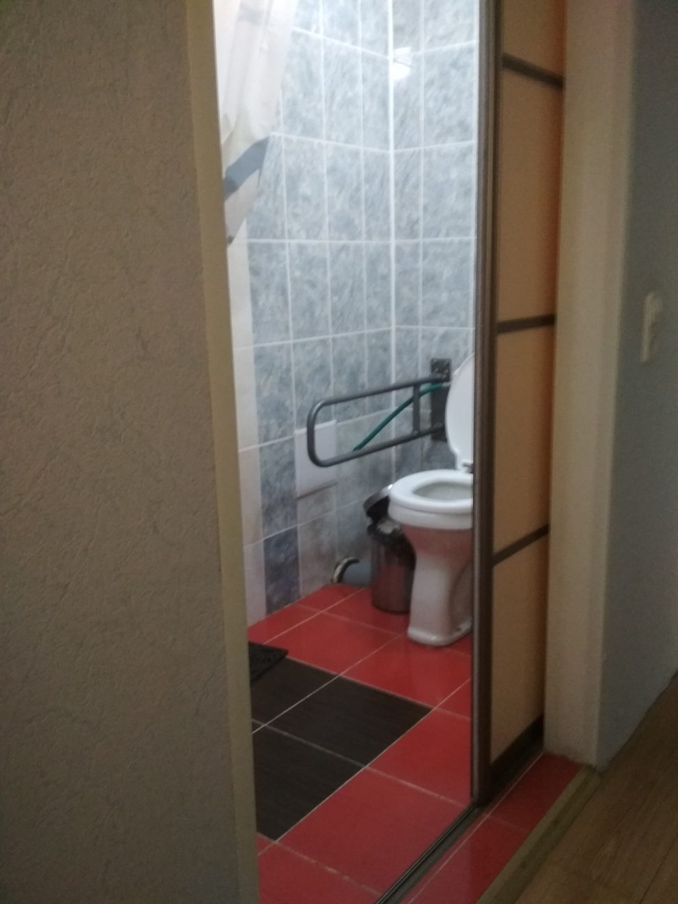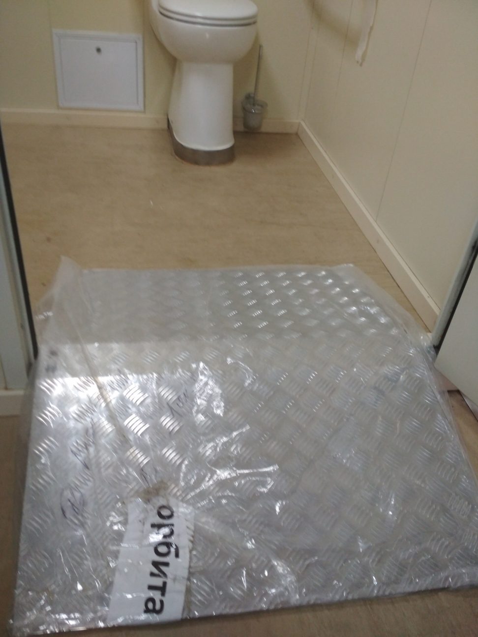 А это странное решение: порог закрыли пандусом, дверь в туалет теперь не закрывается