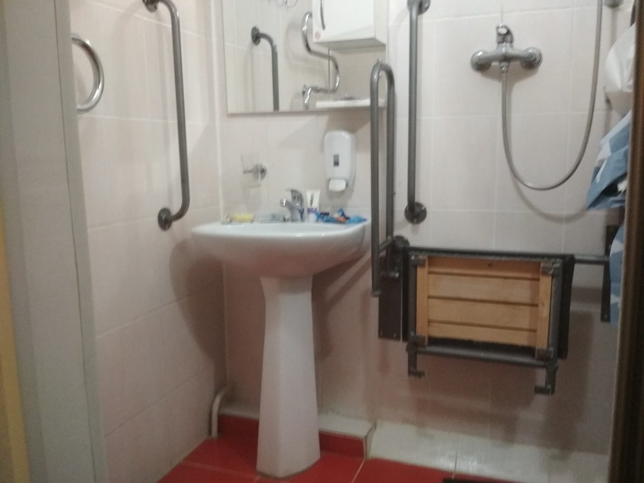 Санузел в номере санатория в Белоруссии — есть поручни и откидной стул для душа