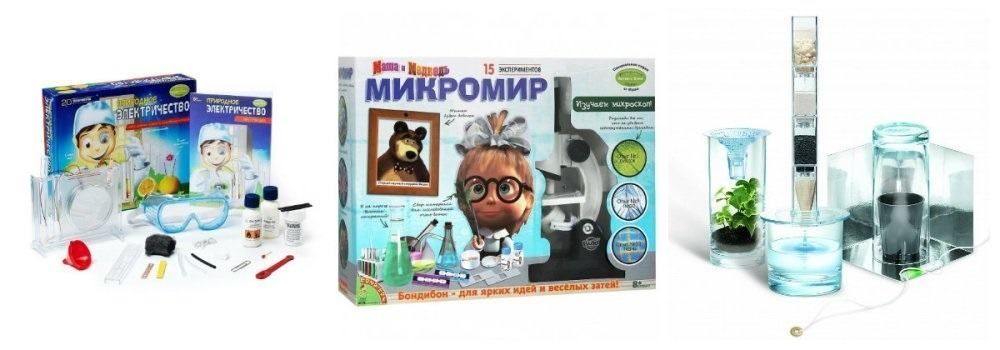 Наборы юного биолога, физика или химика — позволяют заинтересовать детей изучением науки.