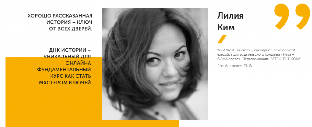 5. Онлайн-курс Лилии Ким «ДНК истории». 15 уроков для тех, чьим профессиональным инструментом является история. Курс поможет найти свой авторский голос и видеть истории всюду.