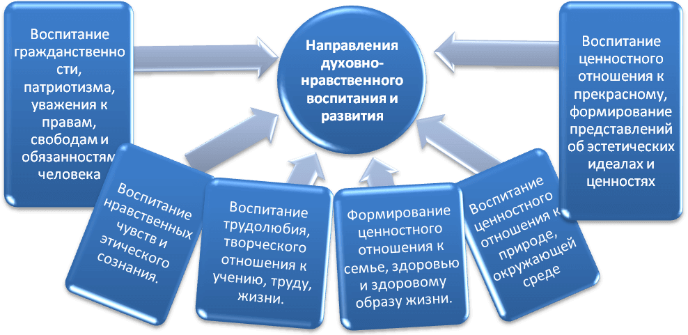 Стержень духовно-нравственного воспитания – идеи основных конфессий, что существуют в России. Главной целью учебных предметов, которые представлены в виде изучения истории религии или культуры – помочь детям понять непреходящую актуальность тех мудрых советов, которые противостоят разрушению, помогают встать на путь жертвенности, самоотдачи.