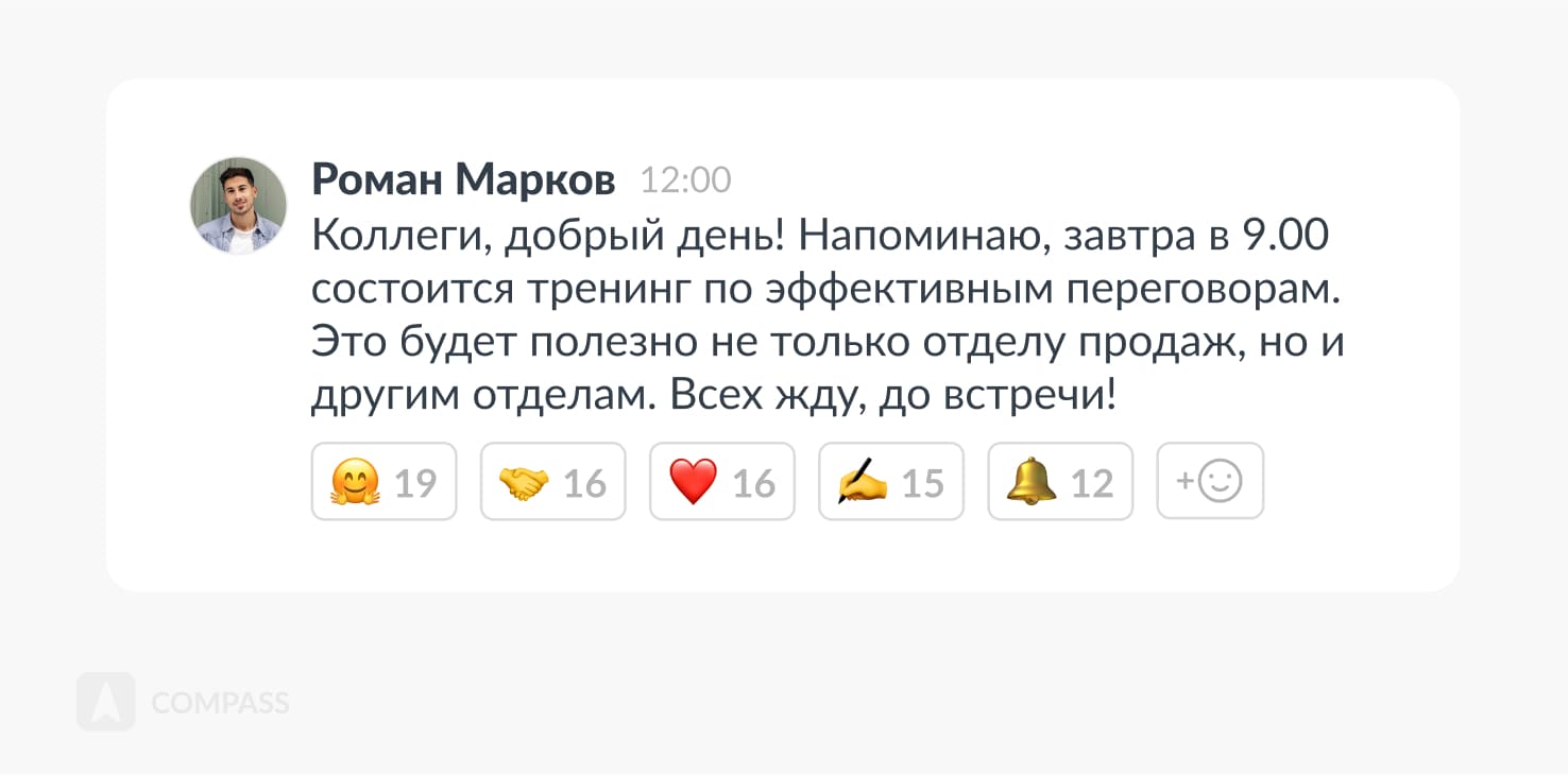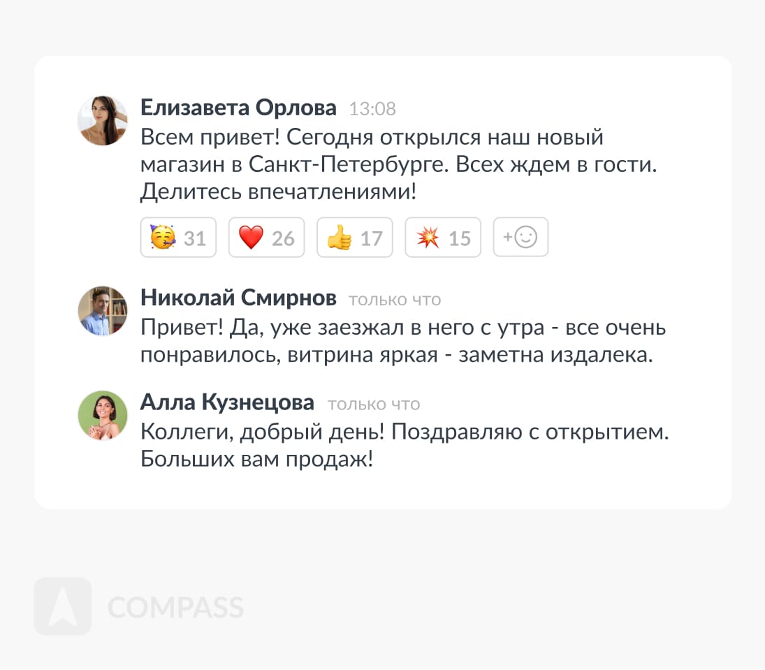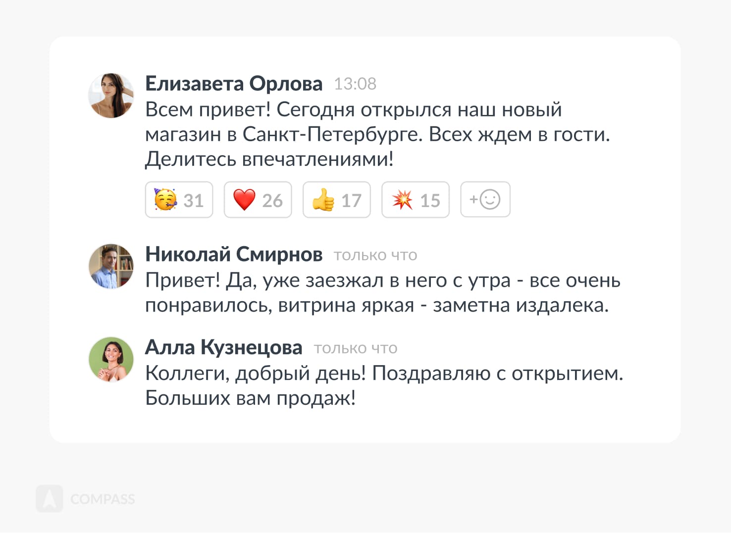 - Создать возможности для открытой и прозрачной коммуникации, общения с коллегами и обратной связи – например, на собраниях, планерках и в корпоративном мессенджере.