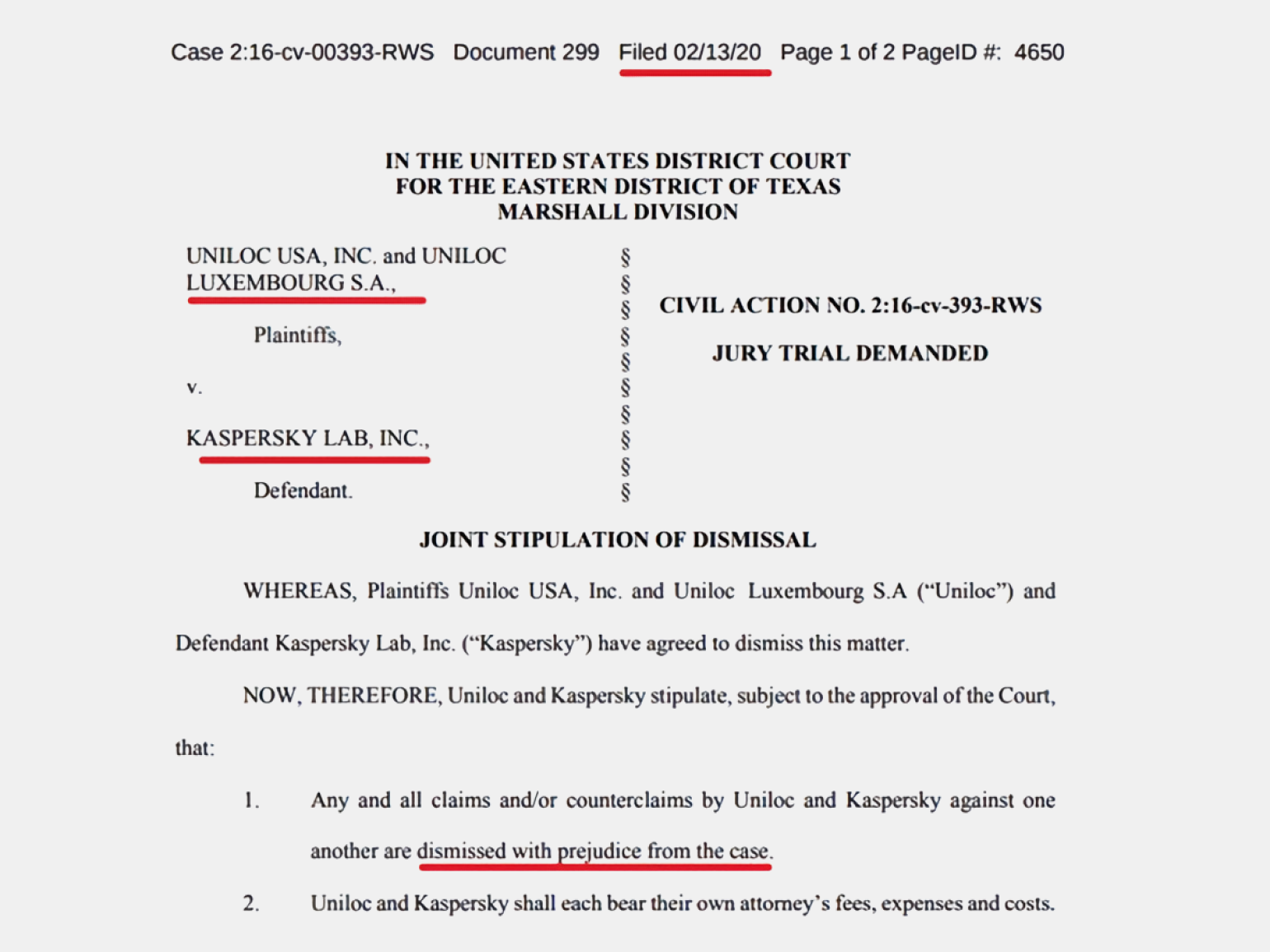 Процесс длился до 2020 года. Истец требовал от «Лаборатории» компенсировать ущерб в 90 миллионов долларов и реально мог получить, по оценкам экспертов, около семи миллионов. Но за время суда два из четырёх патентов тоже аннулировали, а от претензий по остальным Uniloc отказалась.
