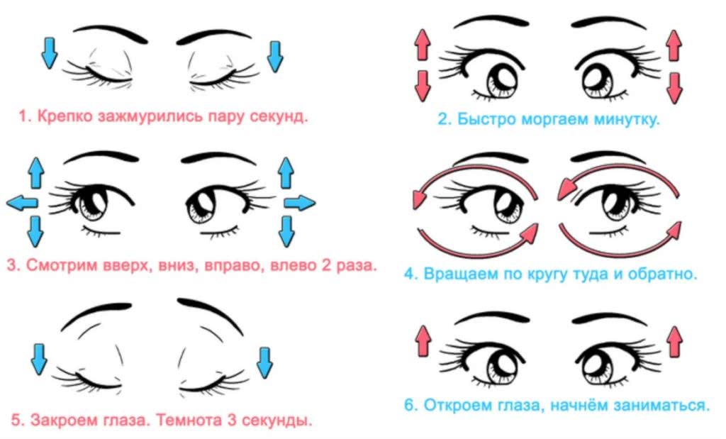 В этом случае комплекс гимнастических упражнений должен быть направлен на расслабление структур глазного яблока и улучшение кровоснабжения.