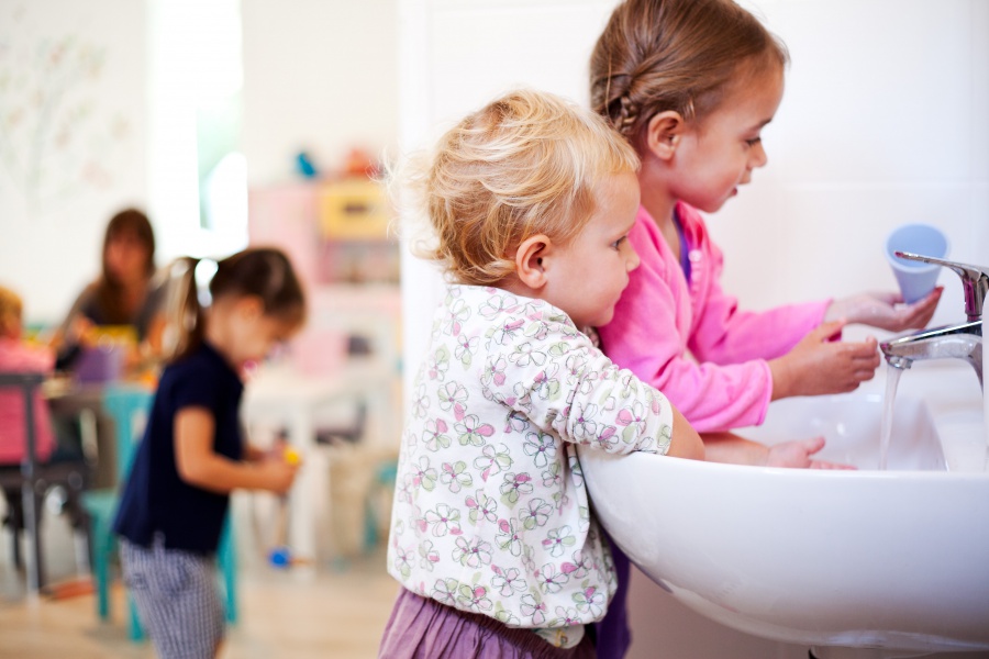 Цель: Учить детей помогать воспитателю в мытье расчёсок: полоскать замоченные расчёски, чистить их с помощью щёток. Развивать трудолюбие, умение видеть непорядок, аккуратность при работе с водой.
