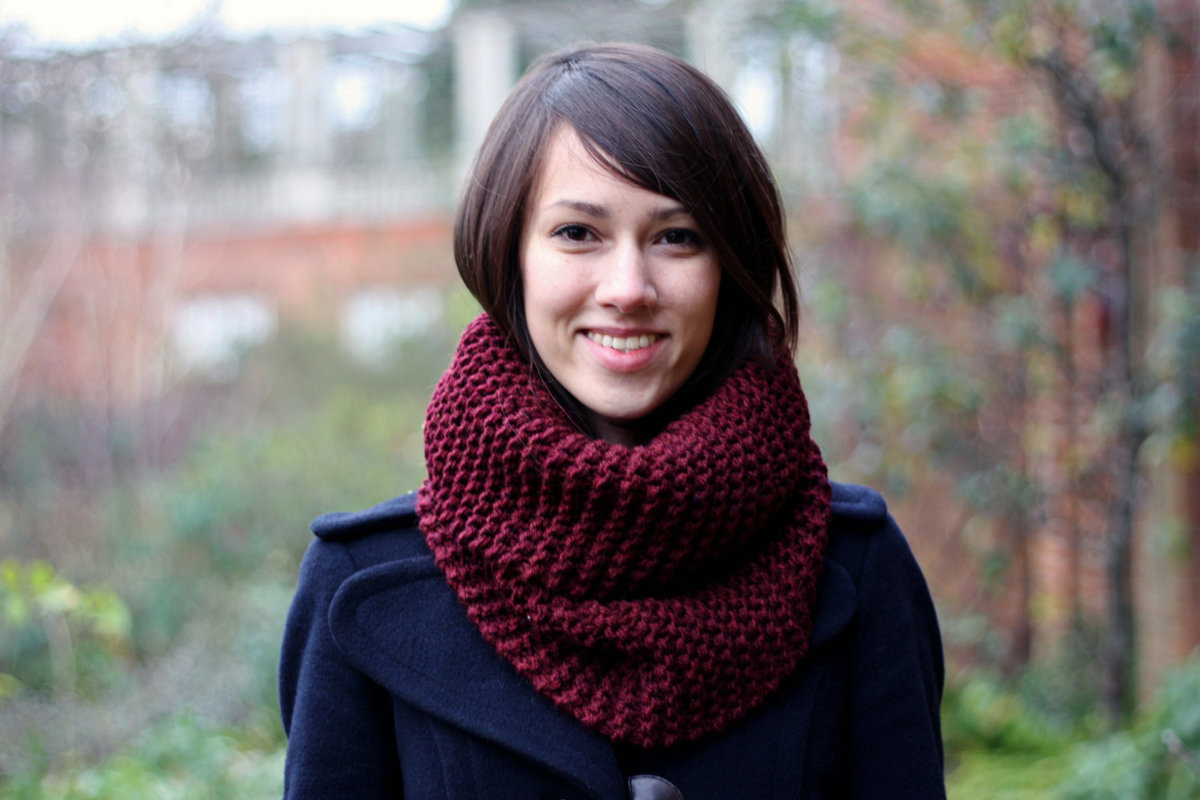 В качестве своего первого творения лучше всего выбрать шарф без замысловатых узоров. Для работы нужны всего две спицы, что будет удобнее чем вязание по кругу на чулочных. При работе с прямым полотном, вы сможете отработать скорость и плотность своего вязания.