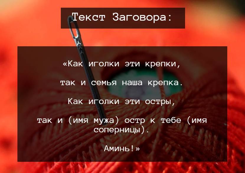 Утром, до рассвета, достать иголки и завернуть в белый хлопковый платок. Затем подкинуть этот сверток сопернице и прошептать 7 раз такие слова.
