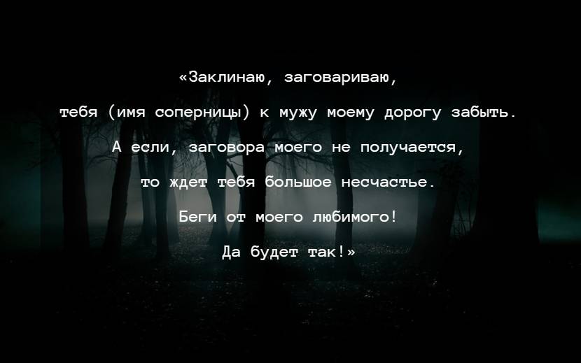 «Как соль в ложке нагревается, так и любовь между (произносите имена изменщиков) остывает. Черная кошка между вами (имена) пробегает, любовь исчезает. Черная ворона между вами (имена) летает, любовь ваша иссыхает. Слова эти – сила. Как я хочу, так и будет. Аминь».