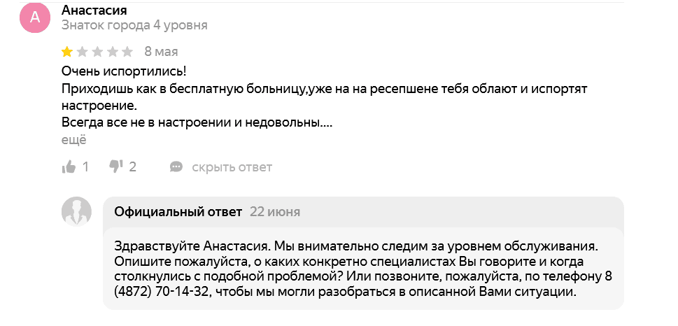 Пример ответа на негативный отзыв