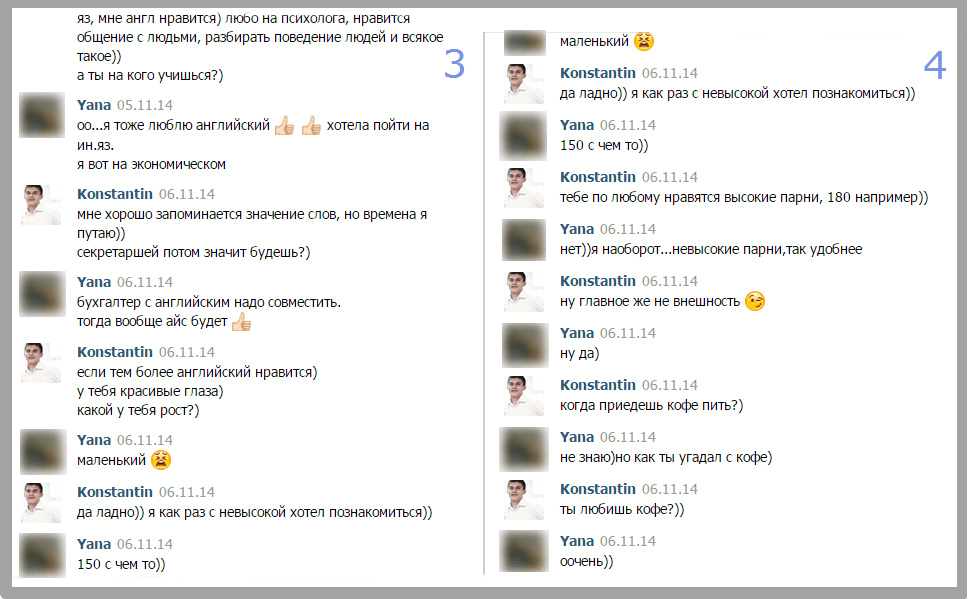 Это целая переписка от момента знакомства до предложения выпить вместе кофе.