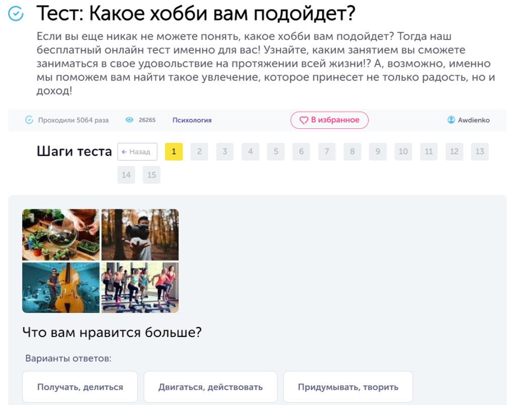 Пройдите тест на тему «Какое хобби вам подойдет?»