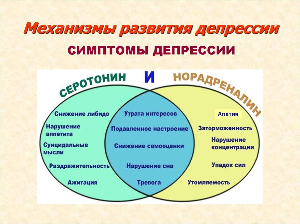 Депрессия считается медицинским состоянием, а не только психологическим, так как при ней происходят физические изменения: сбой в механизме обмена нейромедиаторов (химические вещества в мозге, которые отвечают за передачу сигналов между нейронами).