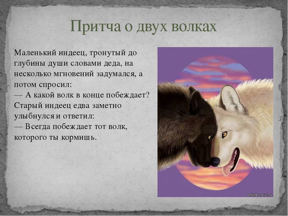 Помните притчу о двух волках и о том, что крепнет тот, которого усерднее кормят? Её дословно можно легко найти на просторах интернета