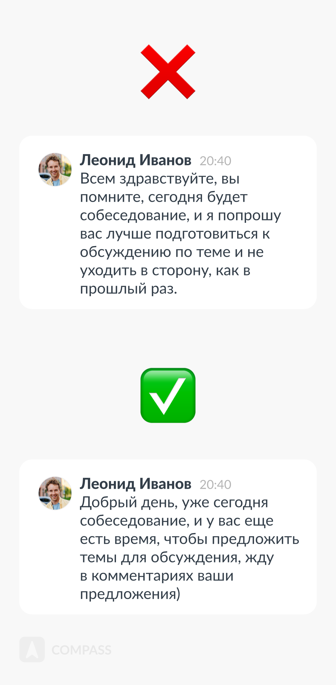 Например, для лучшего понимания формата коммуникации, вы можете спросить: