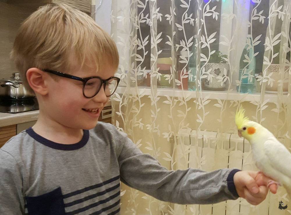 Также родители должны показать собственным примером, как можно успокоить возбужденных попугаев корелл, как за ними ухаживать. Можно вместе обучать пернатого, в игровой форме показать малышу, как отучить птицу бояться людей.