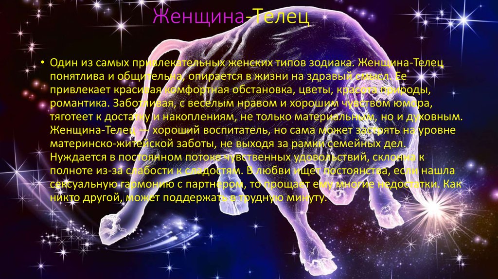 В первую очередь важно отметить, что для вас самой главной задачей будет являться постоянное изучение характера любимого мужчины-Тельца. Человека невозможно заключить в рамки какой-то схемы, хотя общие черты характера у большинства Тельцов наблюдаются