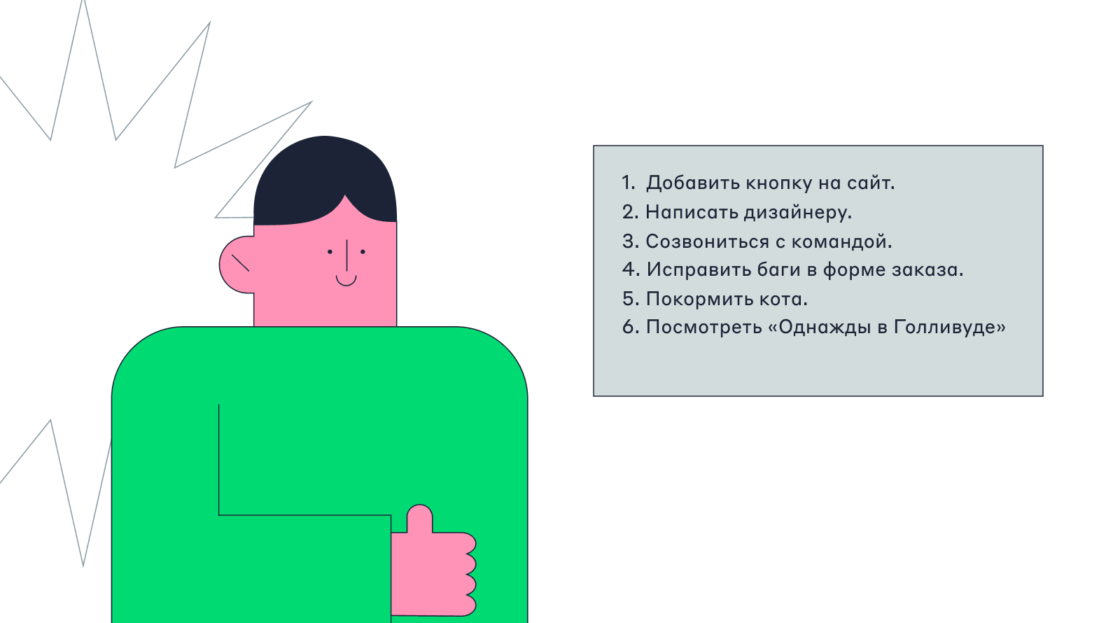 Ваня выписал все задачи из головы и освободил её для продуктивной работы. Теперь не придётся держать все дела в памяти