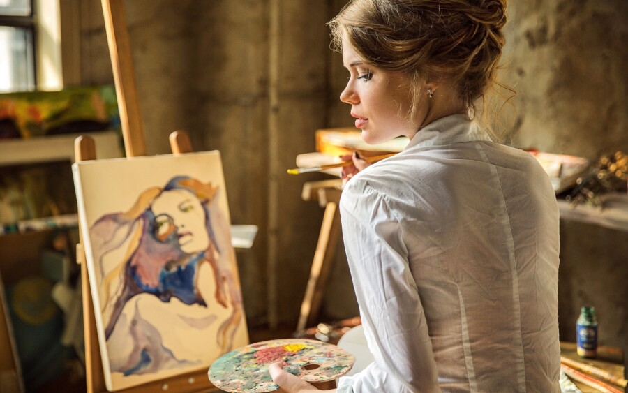 Знакомая песня. Мужчина в красках расписывает своей