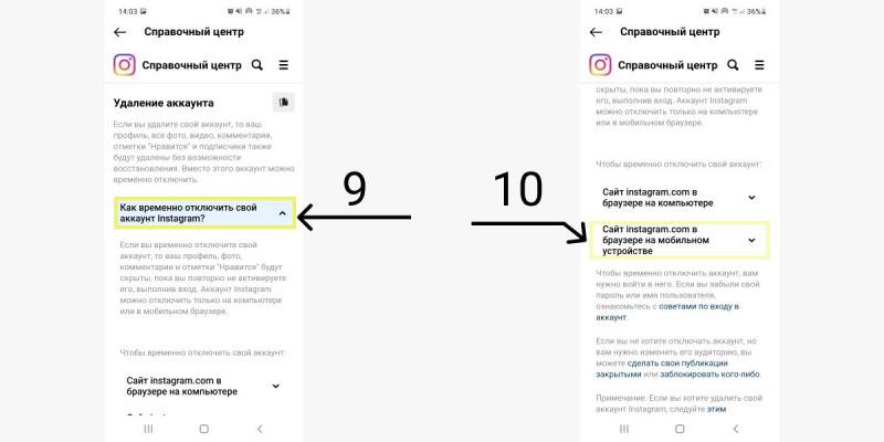 В меню управления аккаунтом необходимо выбрать «Удаление аккаунта». И если вы еще не передумали замораживать свой профиль, выбирайте справку «Как временно отключить свой аккаунт Instagram*?» Иначе можно нечаянно лишиться профиля полностью.