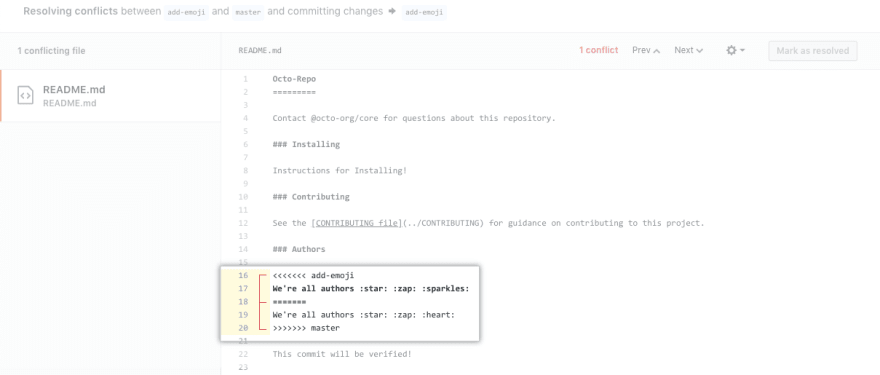 Перевод статьи «How Do I Resolve Merge Conflicts?».