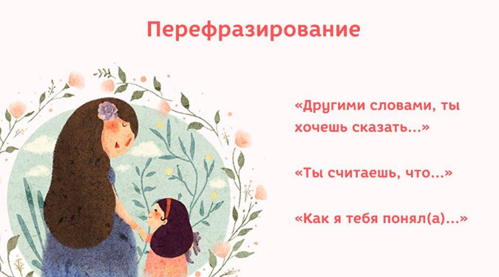 4. Перефразирование — пересказ услышанного своими словами. Его цель — убедиться, что вы правильно поняли человека, а также дать ему понять это.