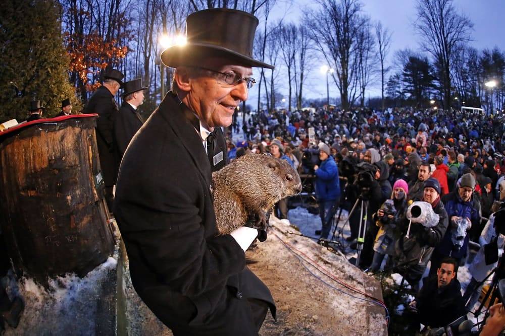 С тех пор каждый год 2 февраля жители этого города могут наблюдать такой ритуал: утром группа солидно одетых джентльменов (смокинги вкупе с цилиндрами – дань традиции) приходят в особое место, именуемое Индюшачьей Горкой (иными словами, Gobbler’s Knob). Считается, что именно здесь прогноз будет самым точным. Эти джентльмены – члены особенного клуба, «Клуба сурка». Среди них есть персона, наделенная особыми правами. Только этому человеку доверяется вытащить зверька и позволить ему «поведать» предсказание на период предстоящих шести недель. После чего этот прогноз объявляется во всеуслышание всем присутствующим. Что удивительно, выслушать сурка приходит очень много народу. Например, 1997 год (ровно через четыре года после выхода на экраны одноименного празднику фильма) был ознаменован прибытием 35 тысяч человек! Только задумайтесь: население всего округа в целых пять раз меньше! А в 1986 году на церемонию прибыл сам президент США, тогда его обязанности исполнял Рональд Рейган.