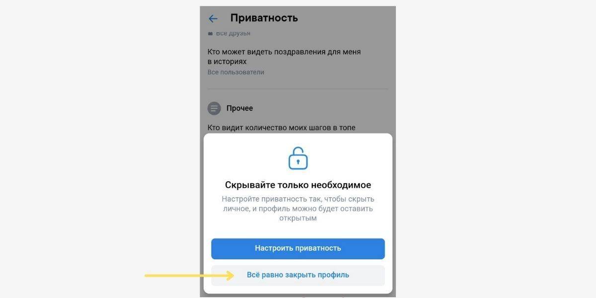 ВКонтакте предложит настроить приватность, но эти меры практически не повлияют на внешний вид страницы – подробнее об этом я говорил выше.