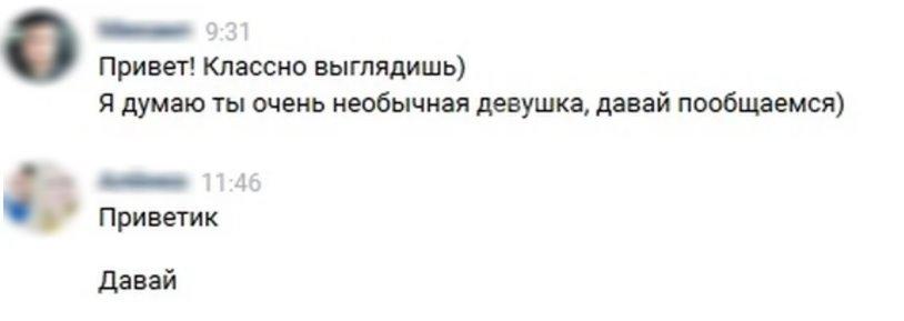 Или такой пример переписки, о чем можно поговорить с девушкой в ВК: