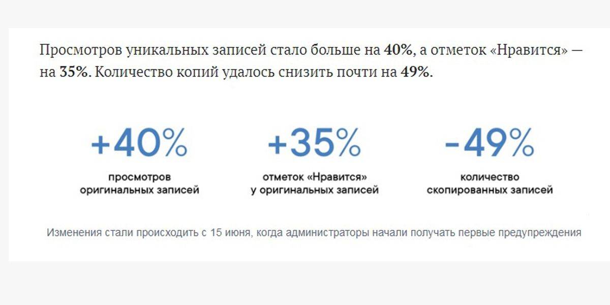 Что плохо – жаловаться можно не на все посты. Мою статью крали многие, но «Немезида» – относительно новый алгоритм ВК и покарает только тех, кто сделал это после 1 июня 2018 года. На более древние копии наказание не распространяется.