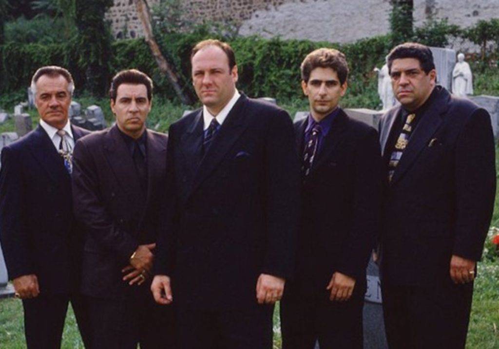 Главные герои «Клана Сопрано» на кладбище (слева направо: Тони Сирико, Стивен Ван Зандт, Джеймс Гандольфини, Майкл Империоли, Винсент Пасторе)