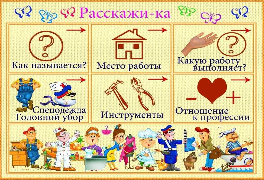 Для ознакомления с профессиями ведущий называет работника, а дети должны перечислить инструменты, приспособления и материалы, которыми он пользуется:
