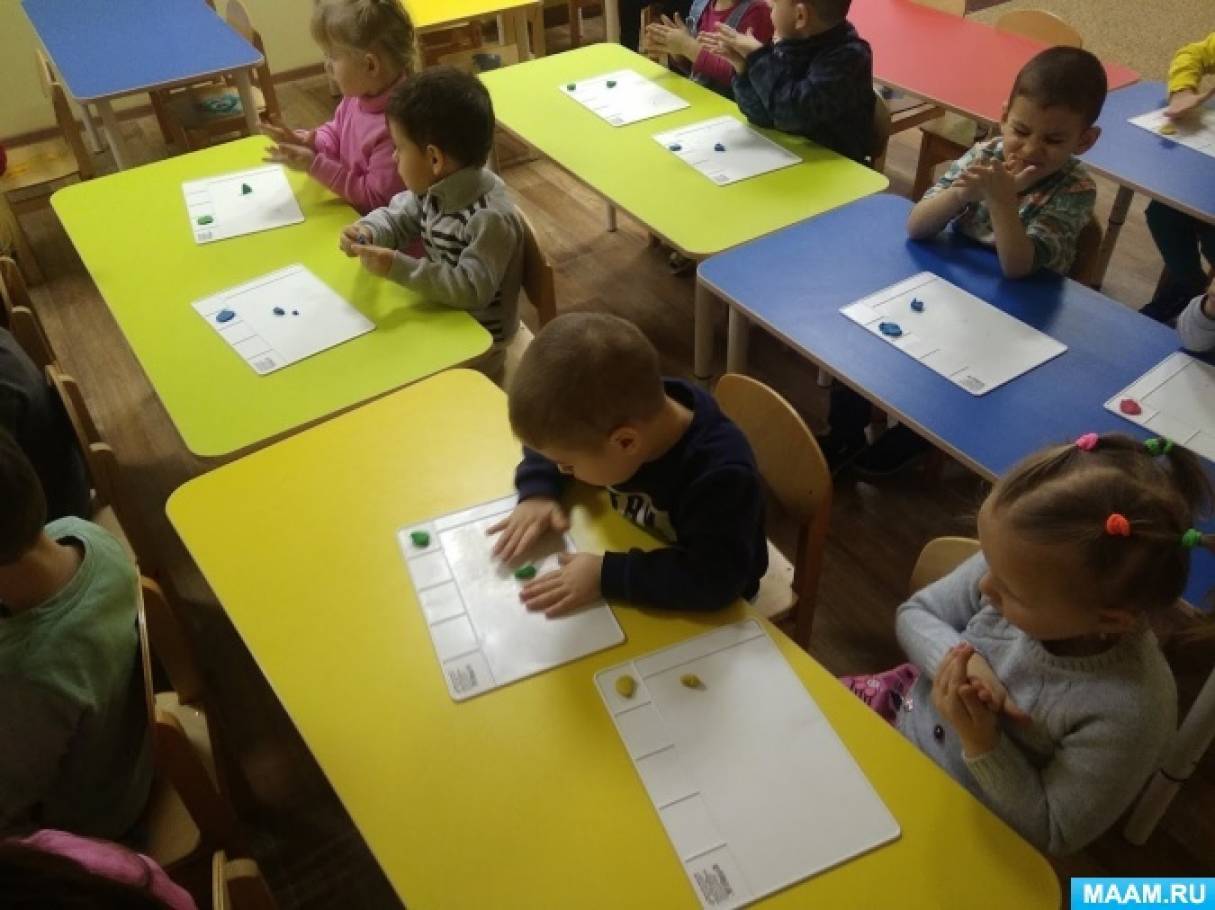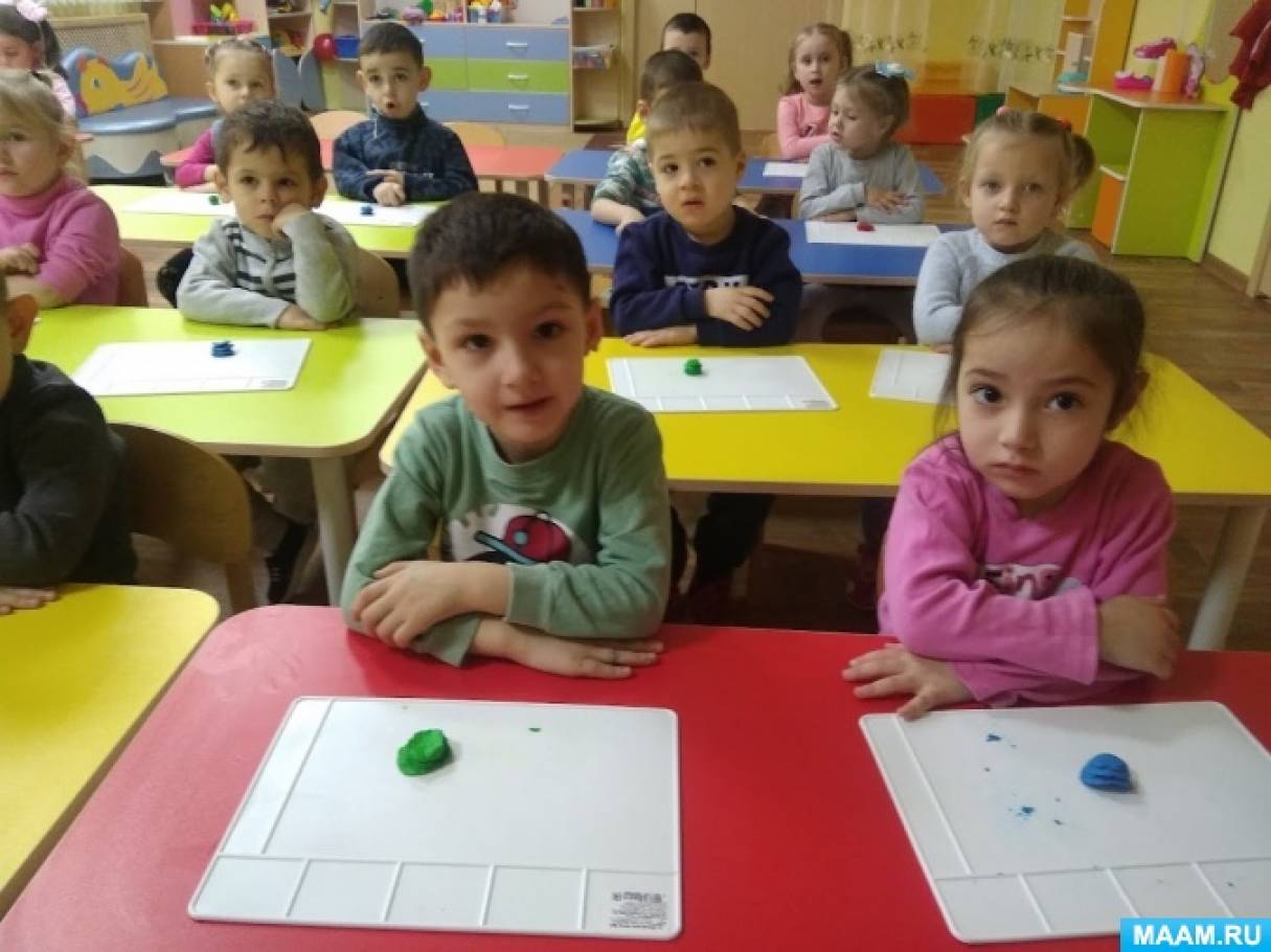 – Молодцы, ребята! А теперь приступаем к работе. Прежде чем начать лепить, необходимо пластилин разогреть в руках (дети самостоятельно выполняют задание, воспитатель помогает при необходимости).