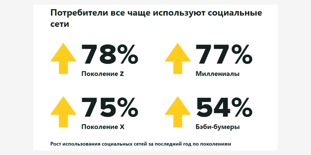Исследование Sprout Social показало, что 71 % потребителей за последний год использовали соцсети больше, чем когда-либо прежде. Бренды удвоили усилия по продвижению