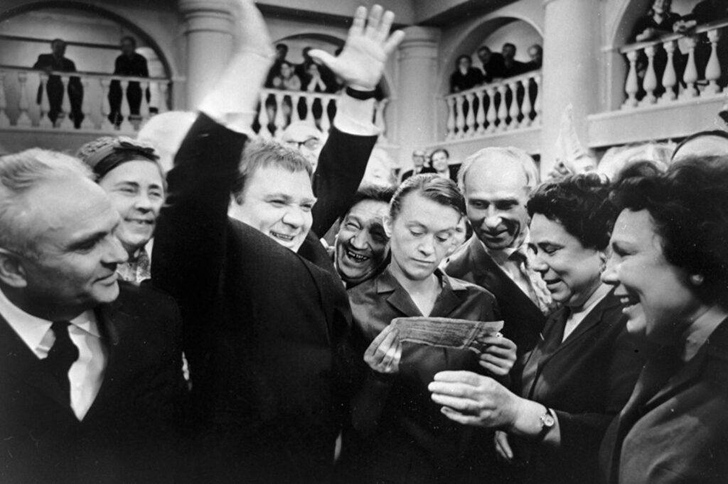 «Зигзаг удачи» (1968). Комедия Эльдара Рязанова с Евгением Леоновым в главной роли. Сюжет строится вокруг приближающегося Нового года. Фотограф выигрывает в лотерее большие деньги. Его коллеги, узнав об этом, устраивают общественный суд, так как 20 рублей на покупку билета фотограф взял тайком из общей кассы. Конфликт разрешается на праздничном новогоднем корпоративе.