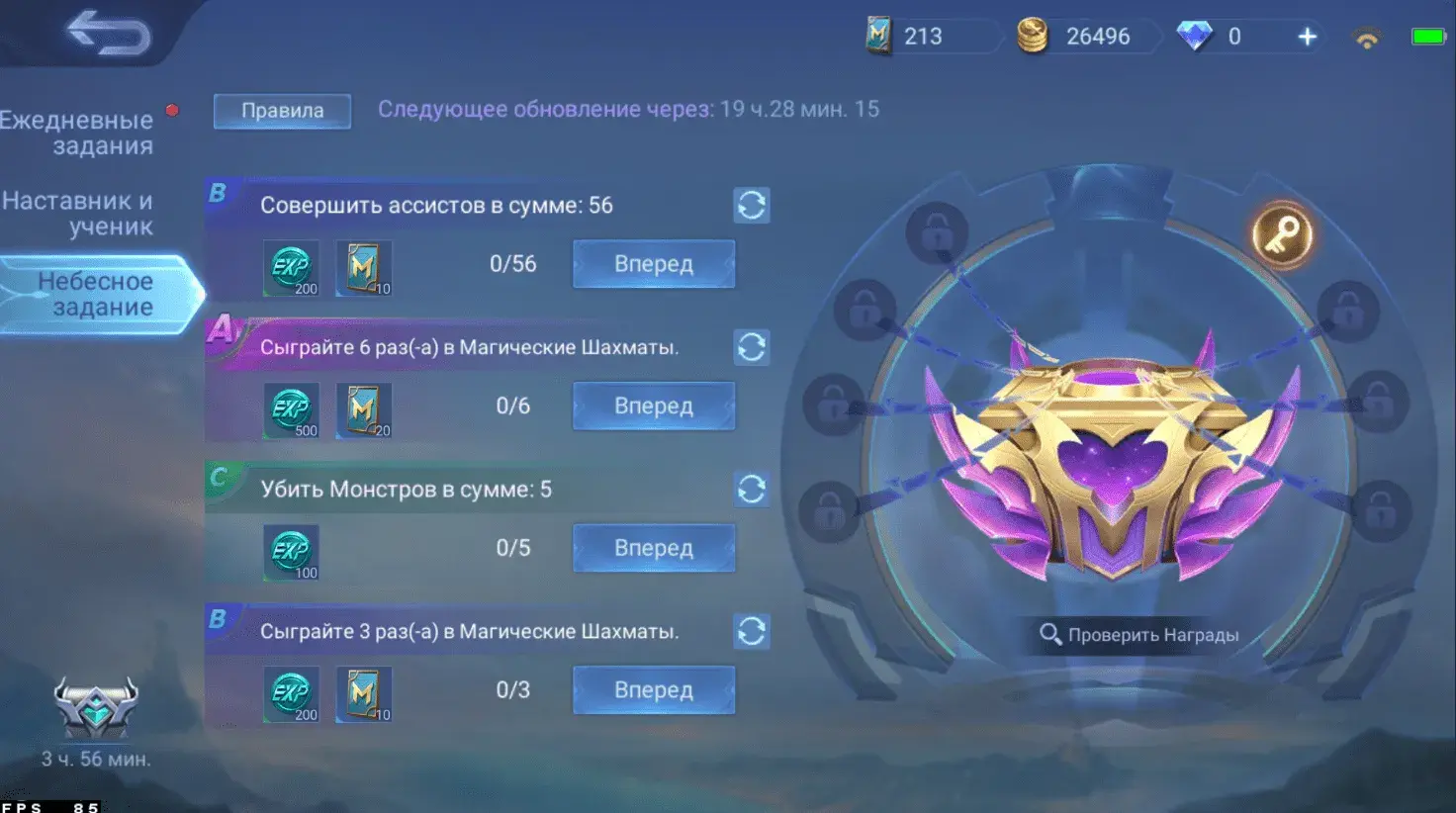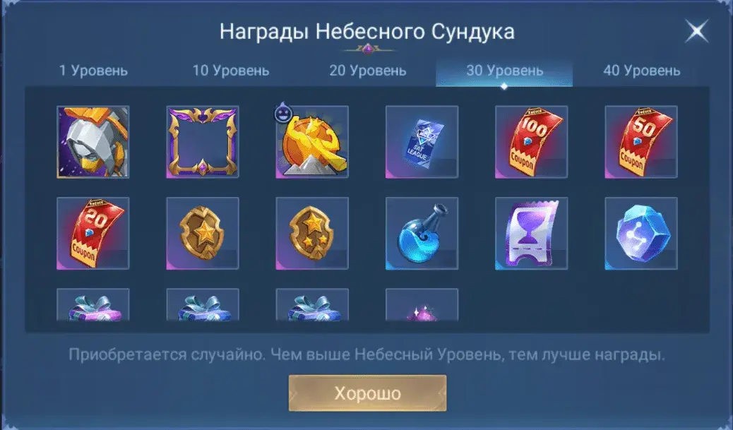 Собрав 8 ключей, вы сможете открыть Небесный Сундук, содержащий волшебную пыль, пропуск на MCL и счастливые билеты. Старайтесь всегда выполнять задания, чтобы повысить небесный ранг и получать еще больше наград.