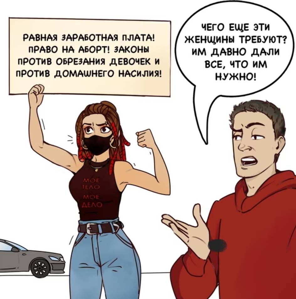- все поступки человека направлены на унижение слабого пола;