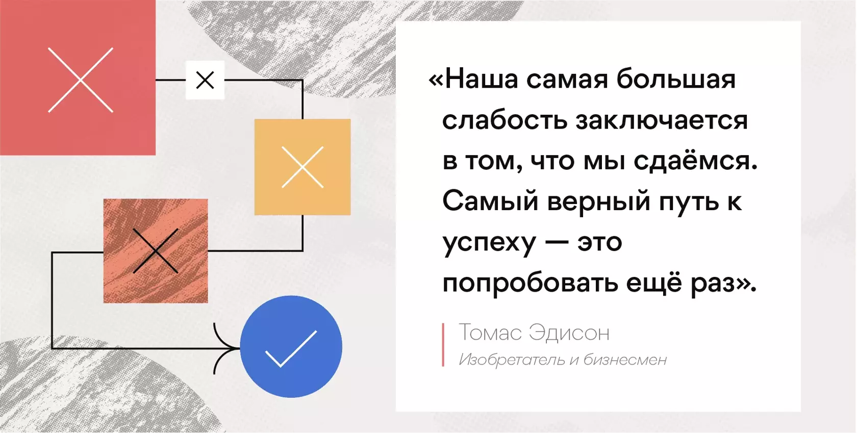 Если вы постоянно стремитесь выше и выше, то, как предсказывает миф об Икаре, в какой-то момент вы начнёте падать вниз. И когда это произойдёт, я хочу, чтобы вы знали и помнили: неудач не существует. Неудача — это способ, с помощью которого жизнь пытается убедить вас сменить направление.