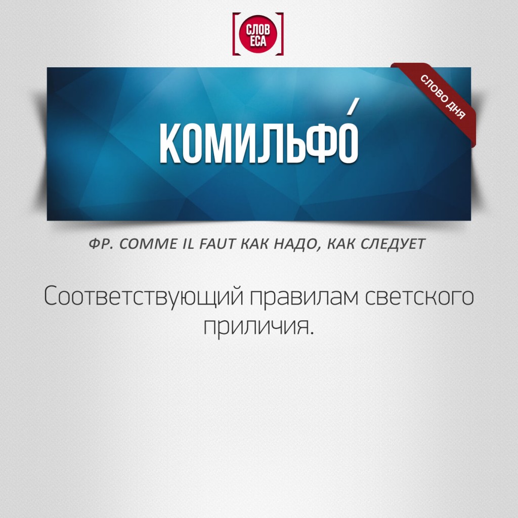 «Комильфо» также вошло в обиход в России в первой половине XVIII века, вместе с модой на все французское. Впоследствии выражение было забыто и изъято из обращения.