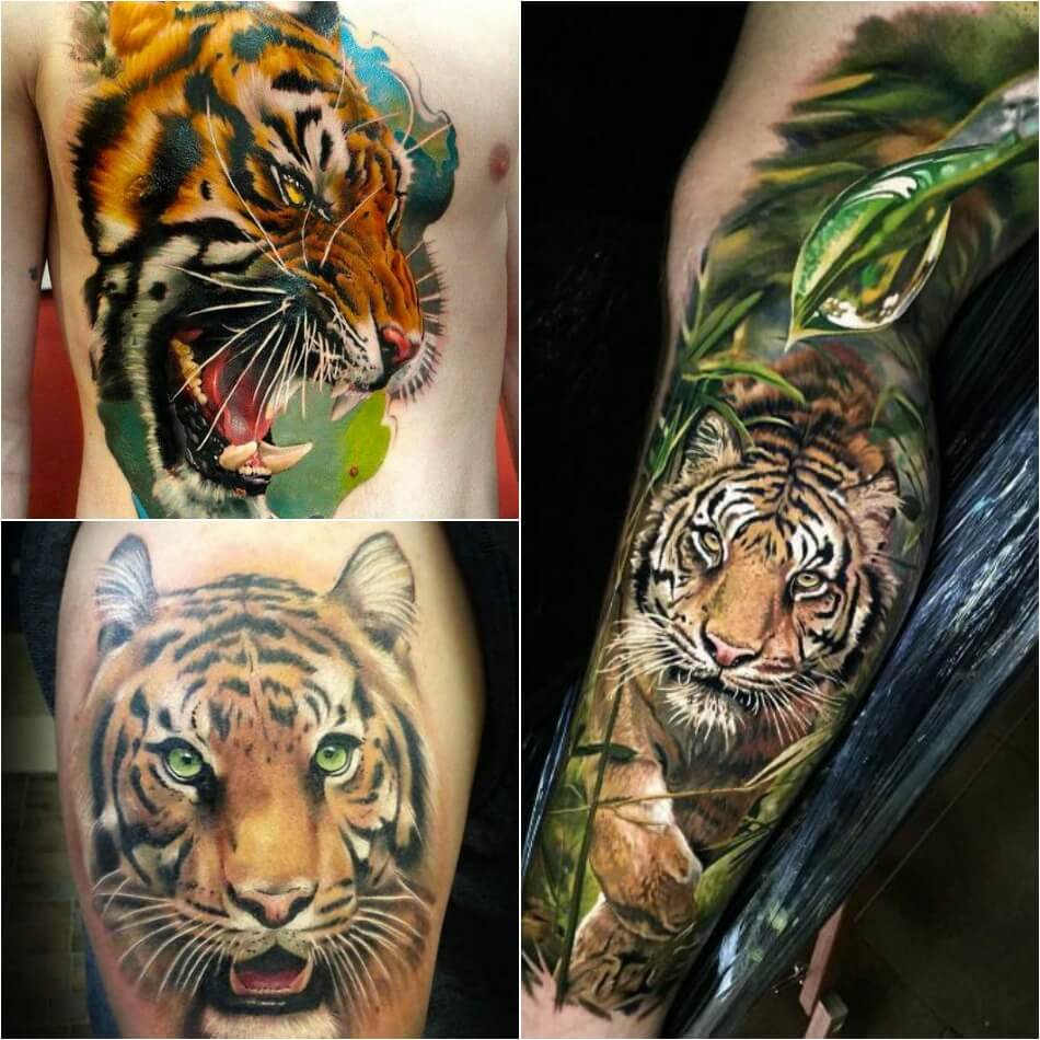 Символ мужества — тигр. Величественный и сильный нрав крупного хищника часто находит отклик у мужской аудитории любителей тату. Мужчины, как правило, воспитывают в себе силу духа, энергичность, волю к борьбе и умение постоять за себя. Поэтому изображение тигра, крупного грациозного зверя, очень часто становится сюжетом мужских тату.