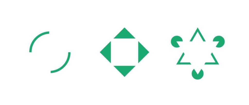 Вы можете видеть на первой картинке белый круг, на второй — квадрат, а на третьей — треугольник, хотя на самом деле это всего лишь комбинация разных других фигур.