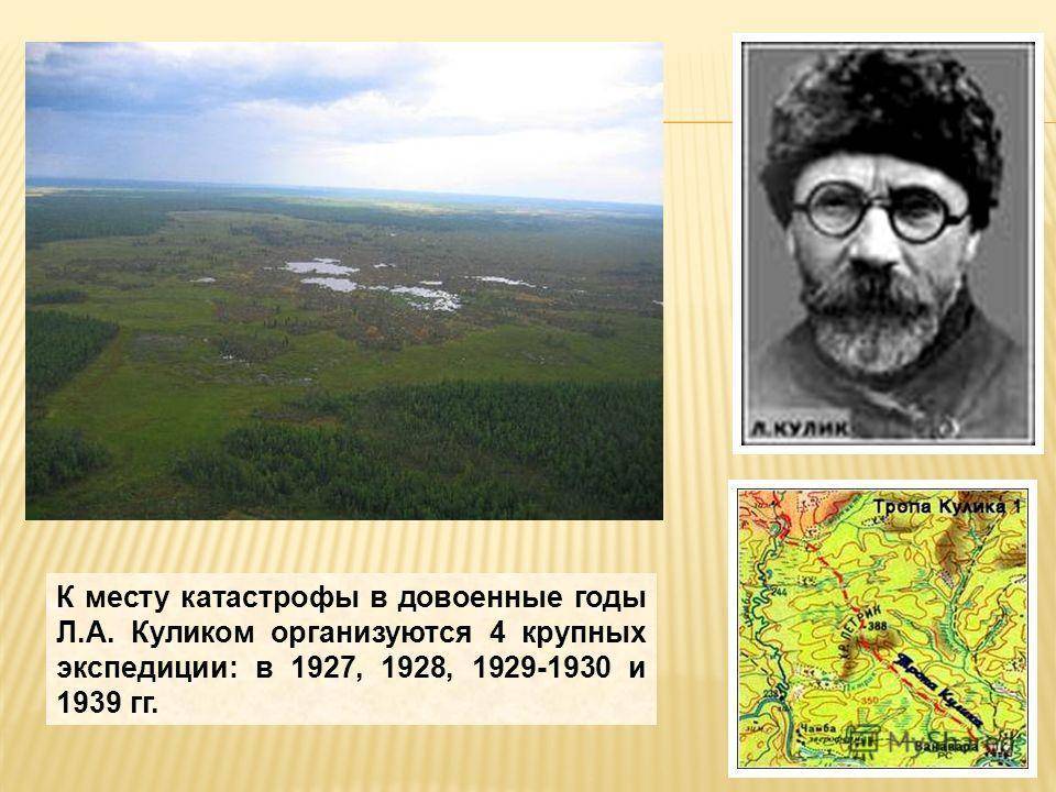 К месту катастрофы в довоенные годы Л.А. Куликом организуются 4 крупных экспедиции: в 1927, 1928, и 1939 гг.