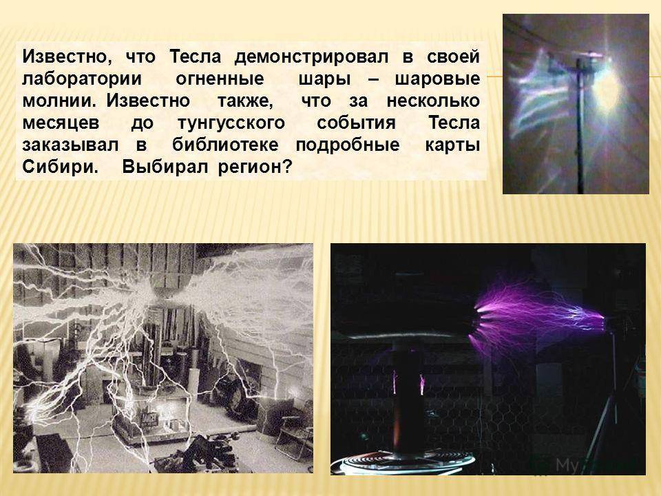 Известно, что Тесла демонстрировал в своей лаборатории огненные шары – шаровые молнии. Известно также, что за несколько месяцев до тунгусского события Тесла заказывал в библиотеке подробные карты Сибири. Выбирал регион?