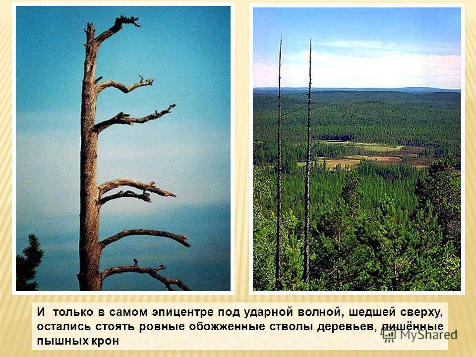 И только в самом эпицентре под ударной волной, шедшей сверху, остались стоять ровные обожженные стволы деревьев, лишённые пышных крон