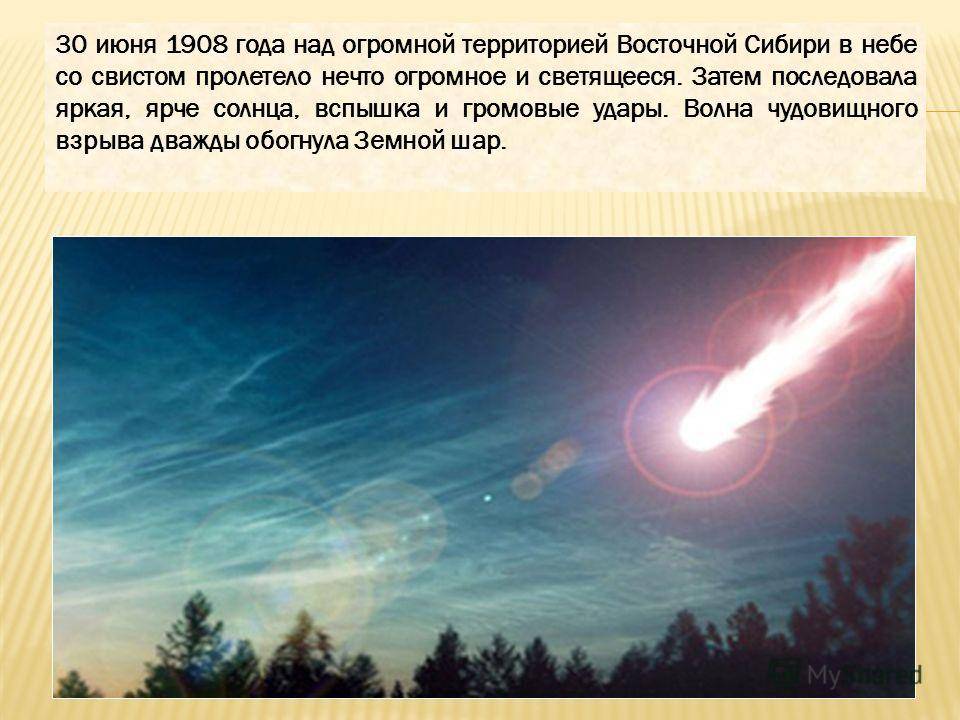 30 июня 1908 года над огромной территорией Восточной Сибири в небе со свистом пролетело нечто огромное и светящееся. Затем последовала яркая, ярче солнца, вспышка и громовые удары. Волна чудовищного взрыва дважды обогнула Земной шар.