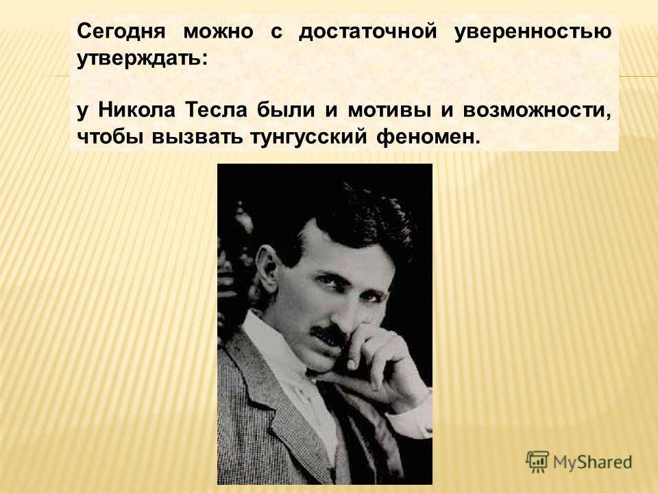 Сегодня можно с достаточной уверенностью утверждать: у Никола Тесла были и мотивы и возможности, чтобы вызвать тунгусский феномен.