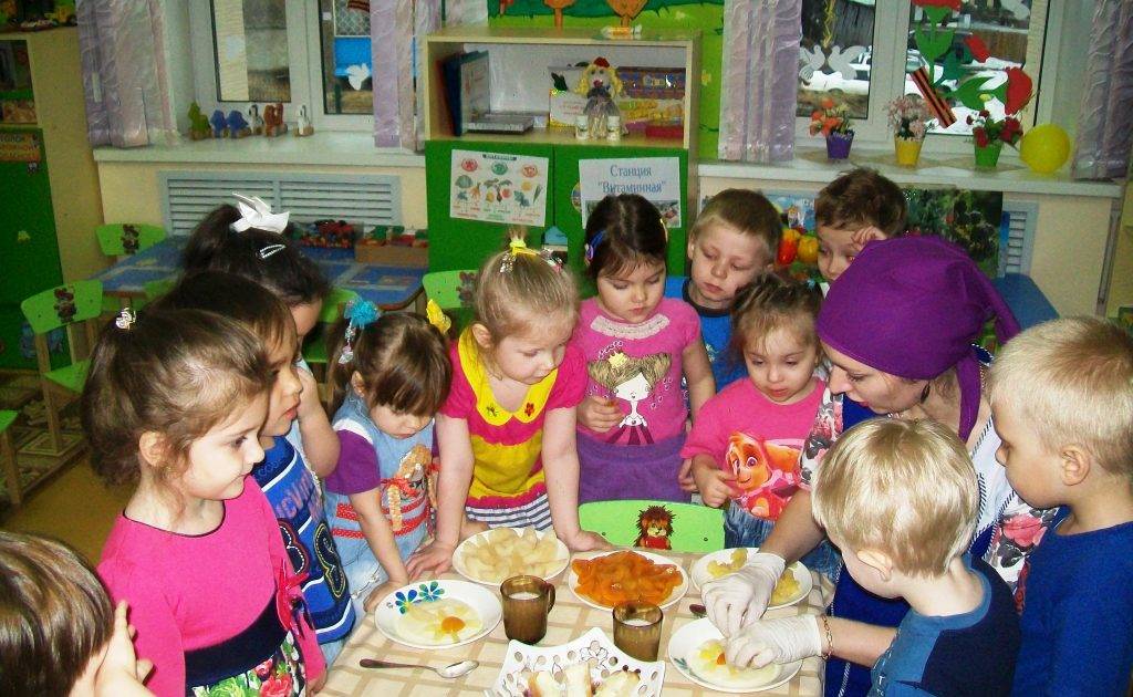 - В здоровом теле — здоровый дух (мероприятия по закаливанию, уход за полостью рта, утренняя гимнастика, приём витаминов, упражнения для дыхания, зарядка для глаз) — физкультминутки; беседы о режиме дня, о полезных продуктах, о вредных привычках; экскурсия в мед. кабинет, логические цепочки «Овощи-фрукты», «Съедобное — несъедобное», «Полезно — не полезно».
